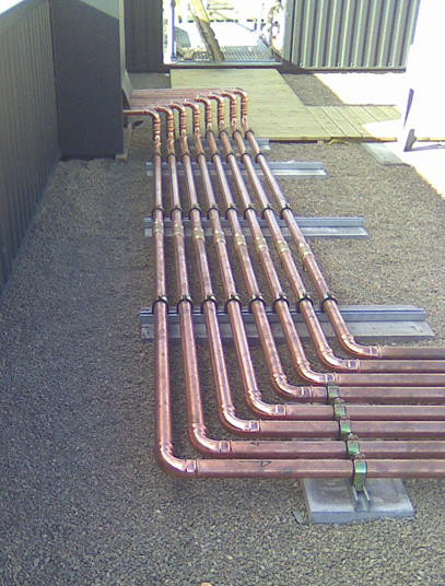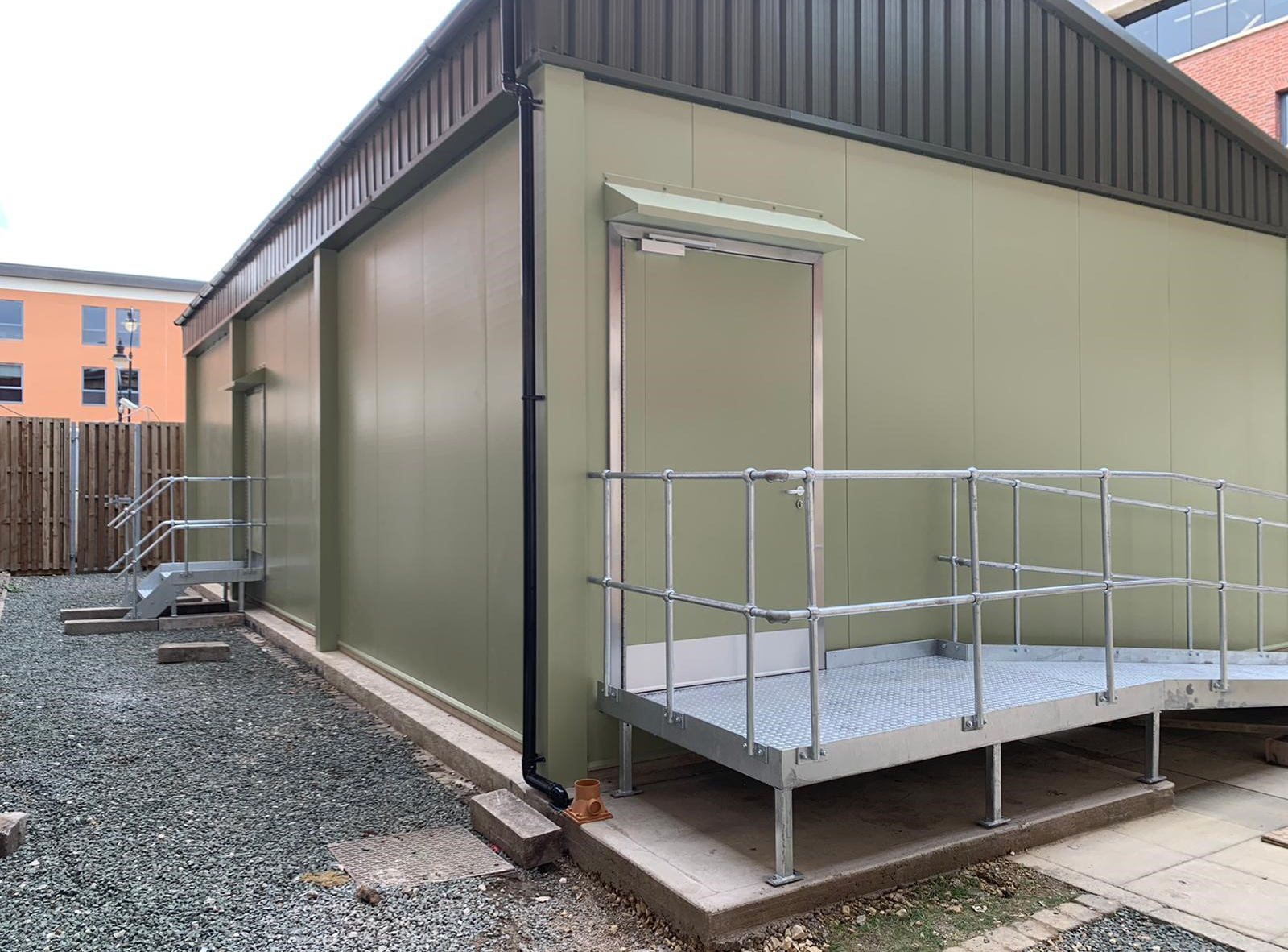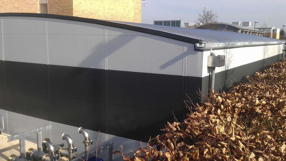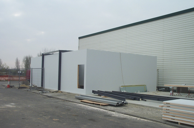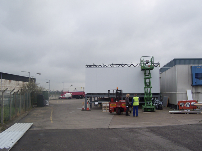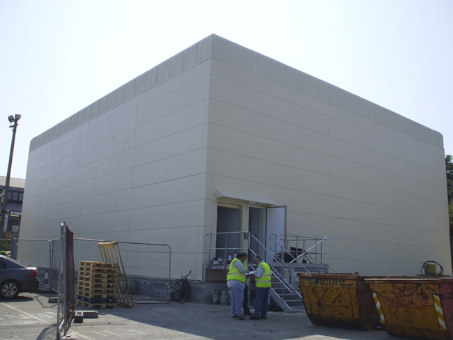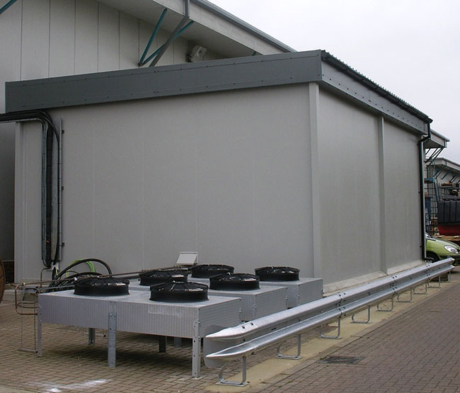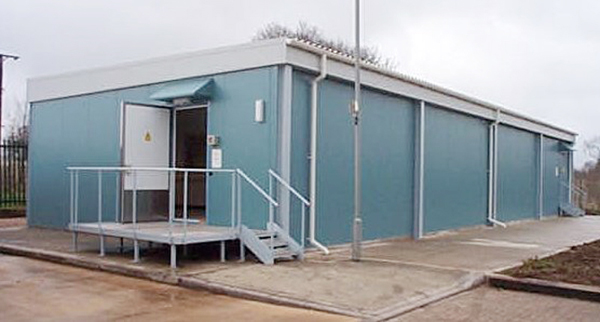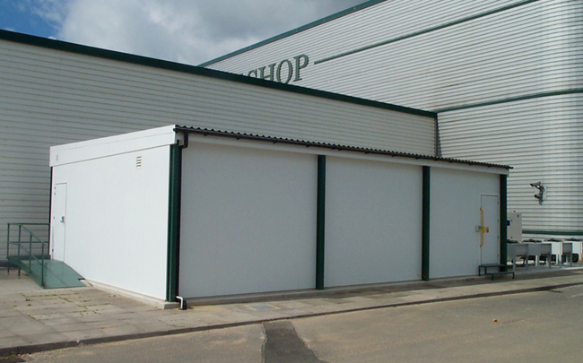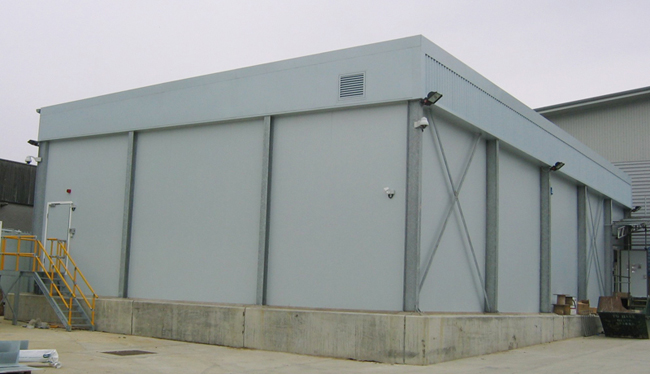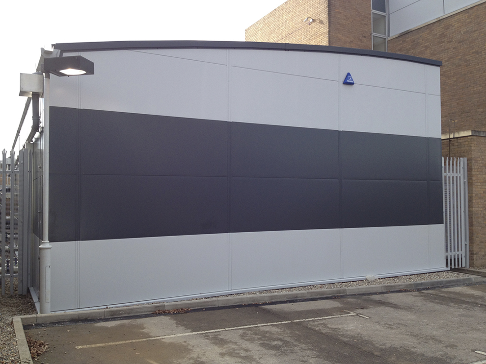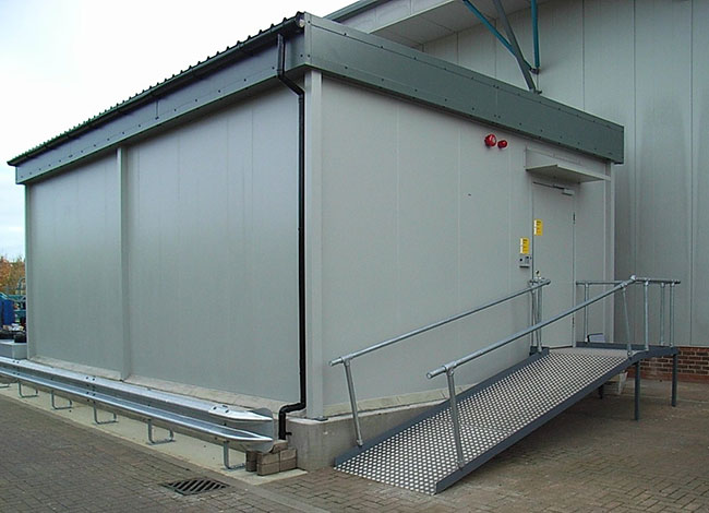 Outside IT room installation on a concrete slab.
